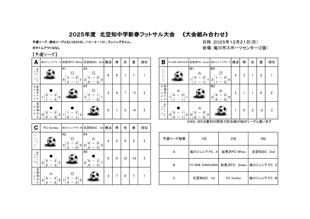 【結果】U14北空知新春フットサル大会 2025/12/24 2025 新春Fs結果(PDFファイル) 関連記事 - Related Posts - 【要項】【日程】2024年 北空知地区カブスリーグ 【結果】2023年 北空知地区カブスリーグ(7月16日分) 【結果】2024年 北空知地区カブスリーグ(第5節) 【結果】2025年 北空知地区カブスリーグ(第3節) 最新記事 - New Posts - 北海道サッカー協会健康チェックシート 【結果】U14北空知新春フットサル大会 フットサル審判講習会のお知らせ 【結果】11月29日(土)U9・U11北空知フットサル大会 結果 【結果】11月23日(日)U12 北空知フットサル大会 結果
